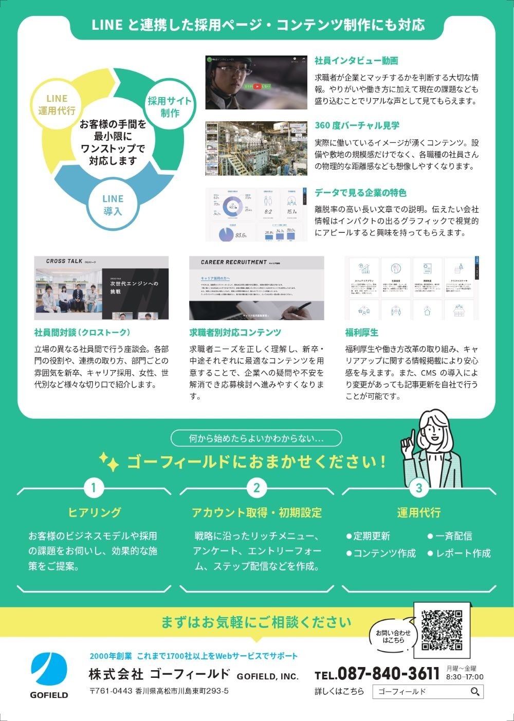GOFIELDが行っている、LINE公式アカウントを通じた採用支援サービスを紹介するチラシを制作しました。